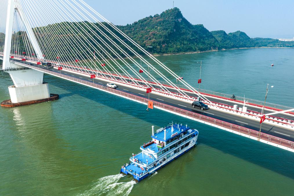 “三峡氢舟1”号在长江宜昌江段行驶。新华社记者 肖艺九 摄