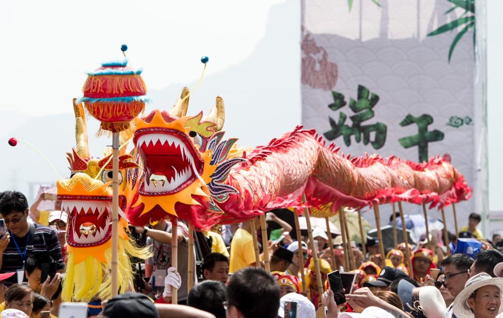屈原故里端午文化节上进行的舞龙表演。新华社记者 肖艺九 摄