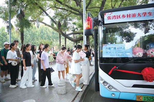 本报讯 7日上午,张湾区乡村游大学生免费公交在六堰人民广场站发车。为吸引大学生群体走出校门,增进对张湾区的了解,张湾区文旅局联合市公交集团推出大学生乡村游免费公交专线,目前开通六堰人民广场到方滩、西沟、百龙潭3条线路。