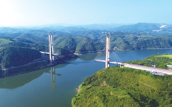 西十高铁汉江特大桥采用主跨420米斜拉桥“一跨过江”。