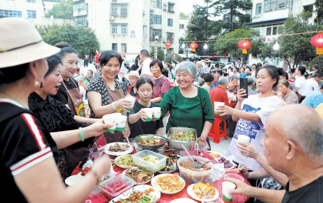 9月12日晚6时,茅箭区五堰街道燕林社区第九届“百家宴”暨邻里文化节活动在燕林小区举行。小区民心广场上,50桌宴席呈扇形排列,300余名居民带着各自精心准备的佳肴欢聚一堂。大家品尝美食、欣赏文艺节目、畅聊美好生活,欢笑声、碰杯声、祝福声融在一起,洋溢着浓浓的幸福氛围。