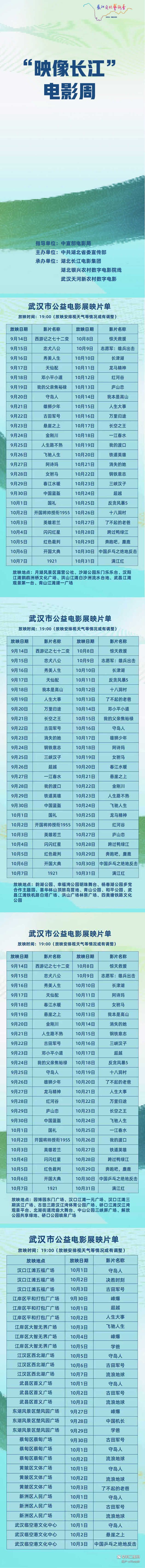 “映象长江”电影周,武汉市放映点、放映影片和放映时间表如下: