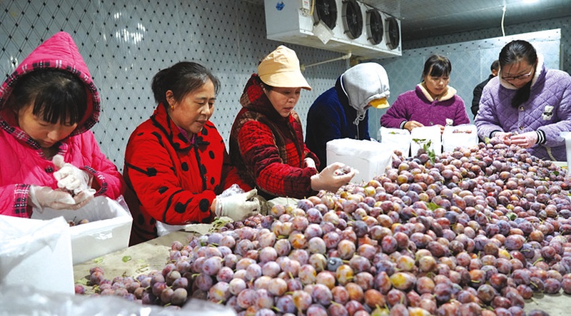 汇满隆园区内,4个大型冷库化身为繁忙的分拣中心,400多名工人身着棉大衣,在低温环境中紧张有序地称重、分拣、包装与装运,保障西梅的新鲜度与口感。随县汇满隆果品贸易有限公司总经理许艳超在一旁介绍:“不同规格的西梅满足不同的销售渠道,像这种单果15g以上、3斤一盒的,最受客人欢迎。”