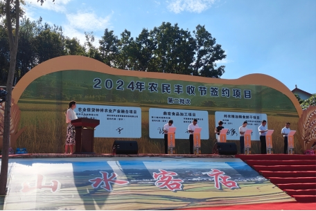 22日,2024年中国农民丰收节黄石主会场活动在大冶举行。湖北农担作为协办方深度参与全程活动。在开幕式上,湖北农担公司现场为5家新型农业经营主体共计授信1300万元。活动期间,公司与黄石方面就创新合作模式,深化政担合作层次、拓宽合作领域、以农担业务助力当地特色农业产业链发展等进行了深入交流。
