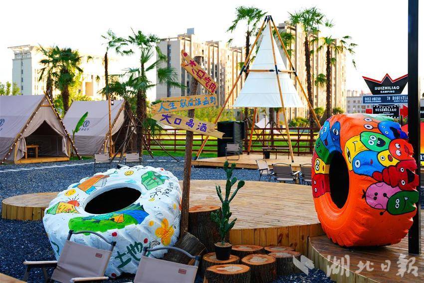 在明珠公园旁,随州规模最大的综合性露营基地、首家寓教于乐的亲子研学营地、时尚慢生活集散中心、特色高颜值集装箱户外营地——随知了露营基地一期已经建成。一期建筑占地面积44.5亩,打造集餐饮、露营、休闲,音乐、亲子、研学为一体的一站式户外露营基地。在这里,城市“烟火气”十足,诗和远方就在身边。