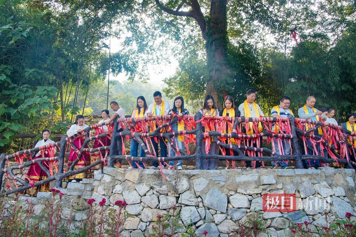 神农部落景区位于随县淮河镇龙泉村,恰好位于中国南北分界线(淮河源),距随岳高速淮河站入口一公里有余。金秋时节,采访团的车辆蜿蜒穿行于盘山公路,深入山林腹地,沿途风光旖旎,一侧是巍峨山体,一侧是潺潺小溪,眼前时而开阔,时而狭窄,奇石嶙峋、怪树丛生,未经雕琢的自然美景扑面而来。