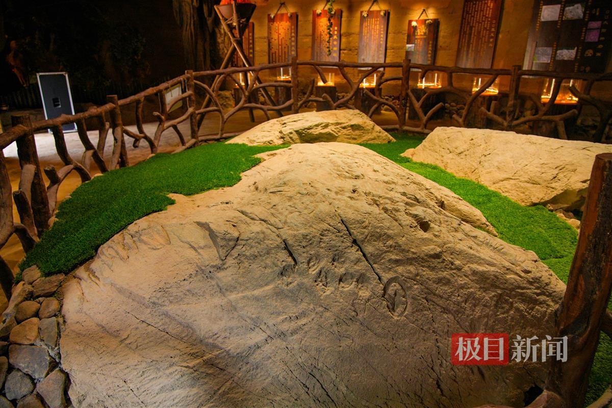 “被誉为‘神农天书’的桐柏山岩画,隐藏在景区的山坡、水畔的石头上。”景区营销负责人刘晶晶介绍,神农部落景区内约有100处神农天书岩画,有生殖器官、三足金鸟等符号,也有寓意炎黄结盟的手拉手岩画。