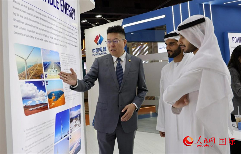 中国电建中东北非区域总部负责人向观众介绍公司承建的可再生能源项目。人民网记者 管克江摄