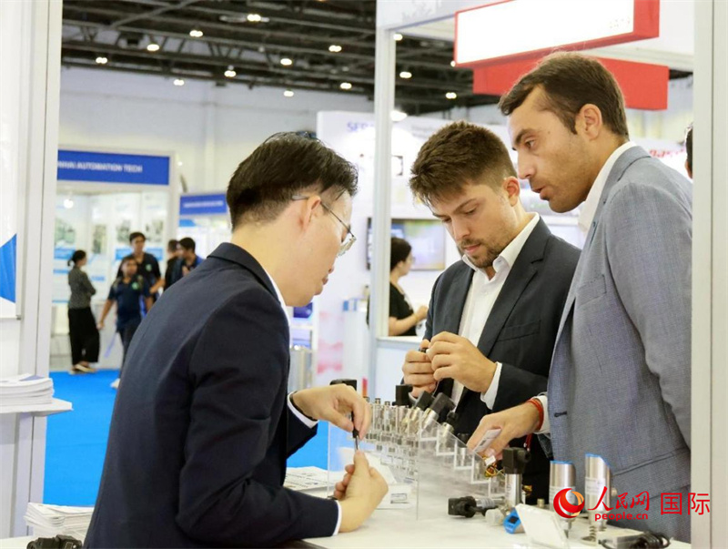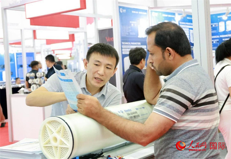 中企推出的绿色能源海水淡化系统吸引参展商关注。人民网记者 管克江摄