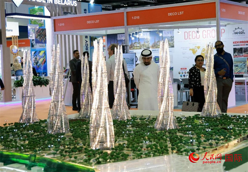 第二十六届迪拜国际水处理、能源及环保展上,观众在参观绿色城市构想沙盘。人民网记者 管克江摄
