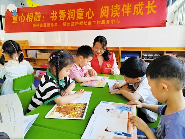 国庆假期,随州益路爱社会工作服务中心开展阅读陪伴活动,丰富孩子们的假期生活。(随州日报通讯员姜翔摄)