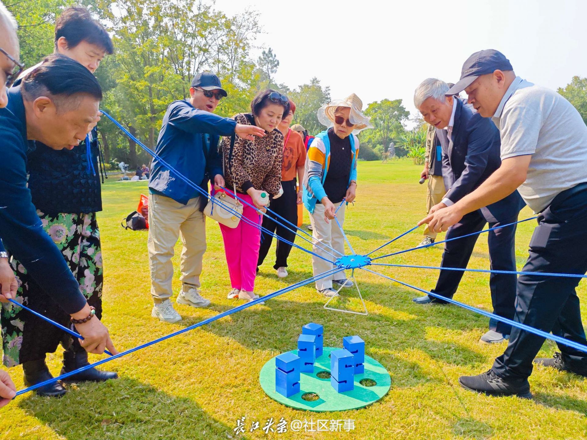 随后“四平八稳 手脚并用 合力建塔”游戏,通过团队合作,在趣味游戏中提升了居民凝聚力。蓝天为幕布,绿地为舞台,灿烂阳光中,大家身心得到了放松,参加活动的阿姨们纷纷表示社区在金秋时节组织重阳节健步行活动,不仅享受了大武汉金秋美景,同时丰富老年文化生活,提升了他们对社区的归属感和幸福感。