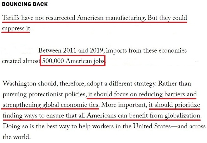 文章认为,华盛顿不应奉行保护主义政策,而应把重点放在减少壁垒和加强全球经济联系上,优先寻找确保所有美国人从全球化中受益的方法,“这才是帮助美国乃至全世界工人的最好方式”。