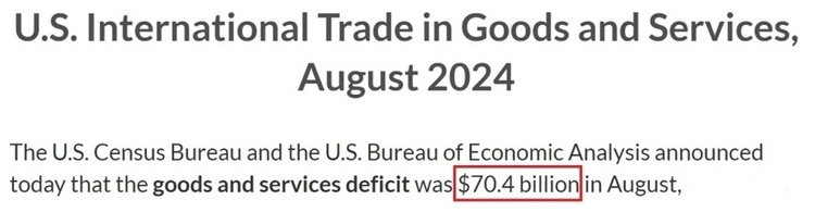 根据美国经济分析局和美国人口普查局日前公布的最新数据,美国8月国际贸易逆差为704亿美元,继续保持赤字状态。