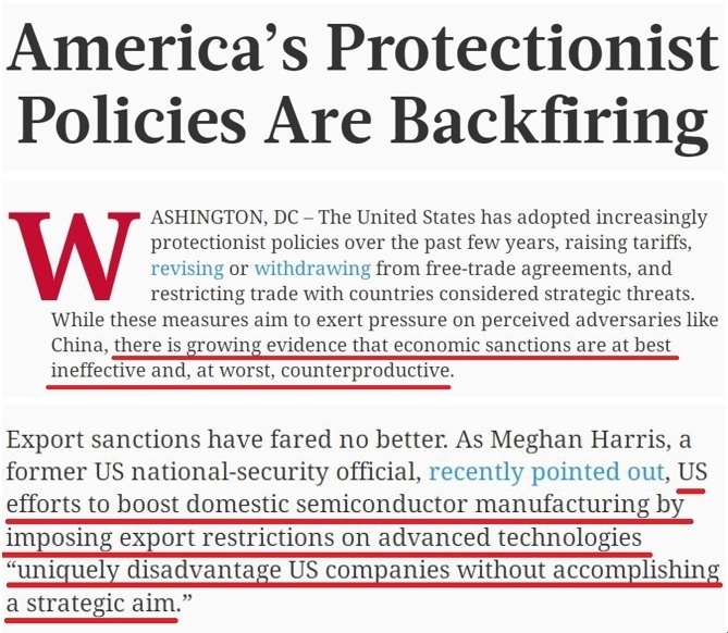 正如美国前国家安全官员梅根·哈里斯最近所指出的,美国试图通过对先进技术实施出口限制来强化国内制造业的做法,“只是对美国公司造成了不利影响,没有实现任何战略目标”。