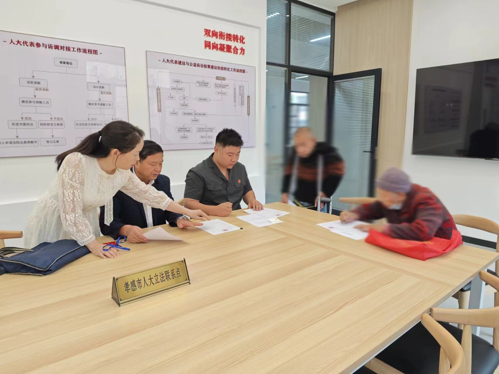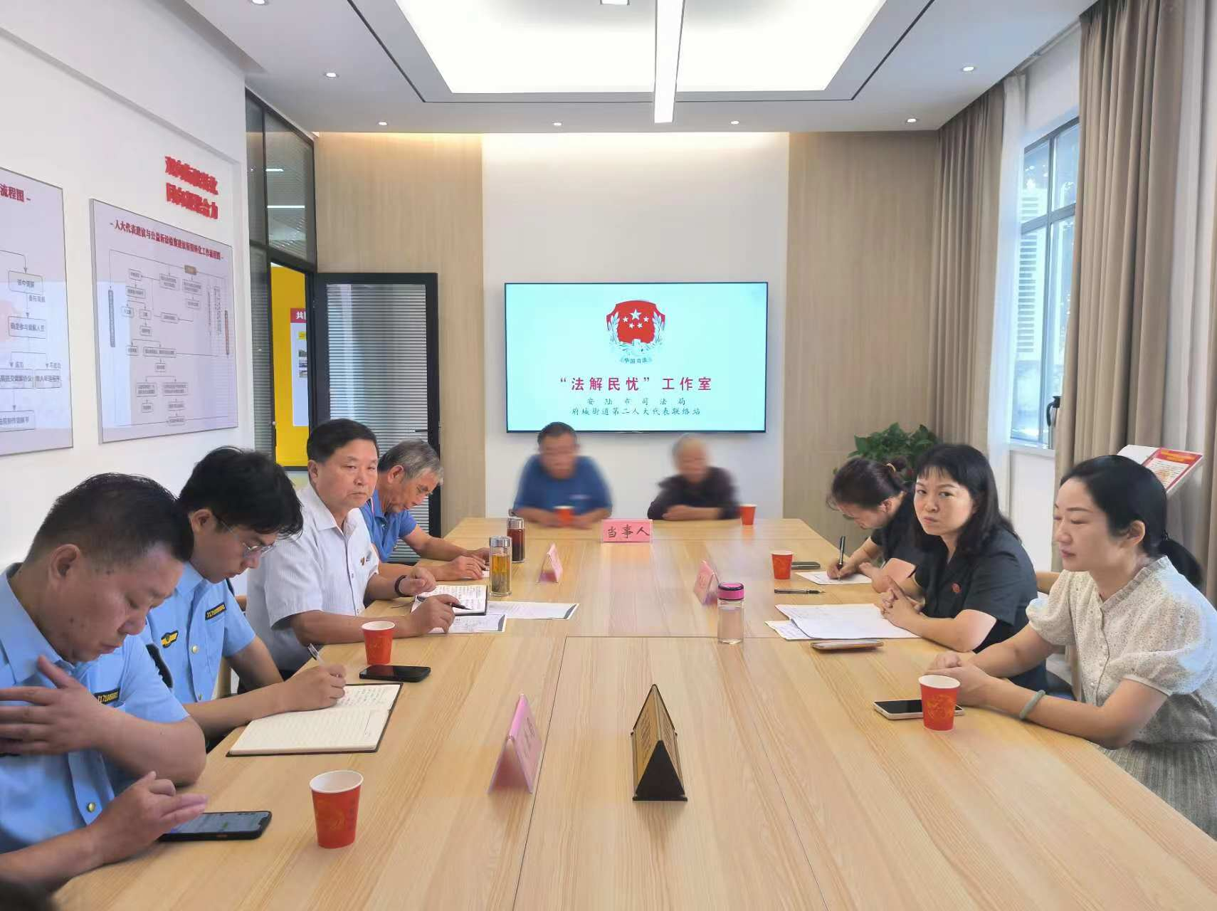 10月10日,在安陆市全过程人民民主实践基地(府城街道儒学社区)的“法解民忧”工作室,“人大代表+法官+金牌调解员+律师”联合开展公开接待日活动,接待来访群众,倾听民意解民忧,成功调解一起遗产纠纷。