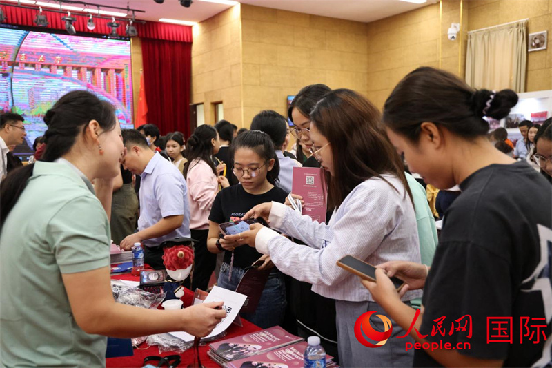 活动现场,老挝学生向中国高校代表咨询。人民网记者 杨一摄