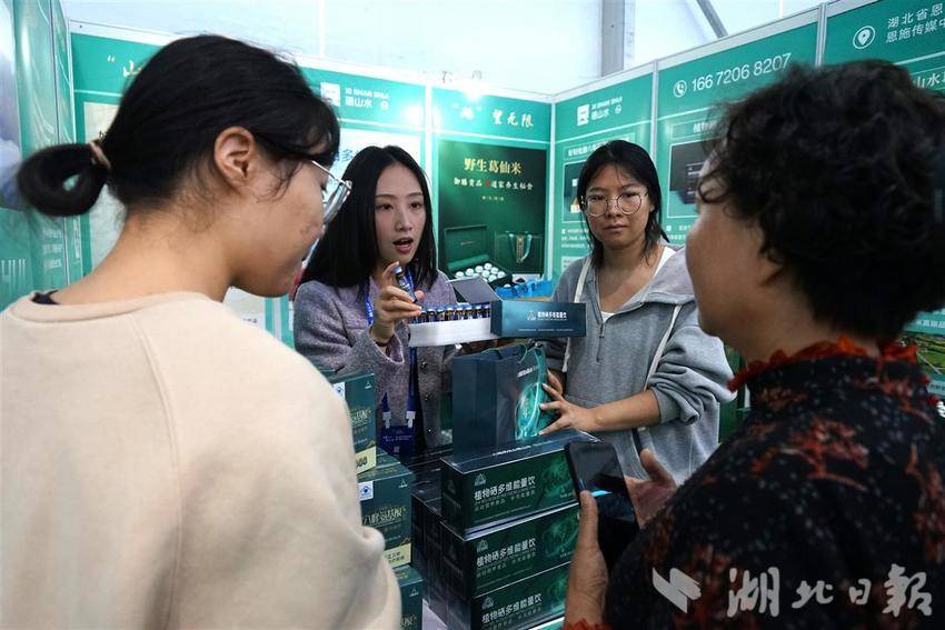 在恩施硒山水品牌运营有限公司展台,首次亮相的植物硒多维能量饮受到年轻消费者关注。