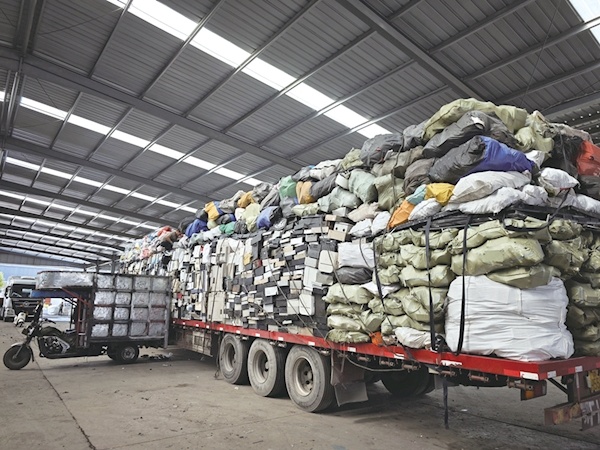 10月18日,在位于房县循环经济产业园的湖北城源科技有限公司,载满废旧物的卡车等待卸货。