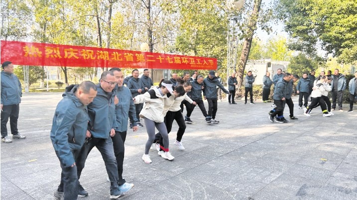 10月26日是湖北省第二十七届环卫工人节。10月23日,在随州城区白云湖体育公园,市环卫服务中心举办趣味运动会,以此迎接环卫工人节。(随州日报全媒记者刘馨怡、通讯员聂少峰、龚道明摄)