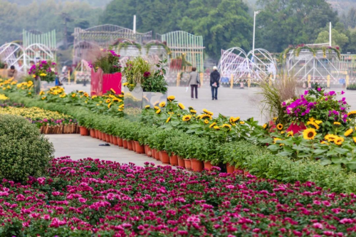 “鸣琴菊廊”展区则以琴弦小径和音乐喷泉为特色,展现出“流水行云”般的动态美感。游客漫步在琴弦小径上,伴随着悠扬的音乐,仿佛置身于一个诗意盎然的菊花世界。展区内的各种菊花品种竞相绽放,色彩斑斓,为游客带来了极大的视觉享受。