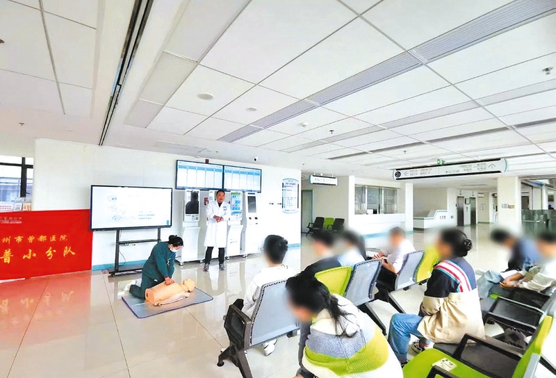 近日,曾都医院在门诊大厅为前来就诊的患者和家属,开展了一场生动的心肺复苏与AED急救科普宣讲,帮助广大群众加强急救意识,提高自救互救能力。 (随州日报通讯员 华晶晶摄)