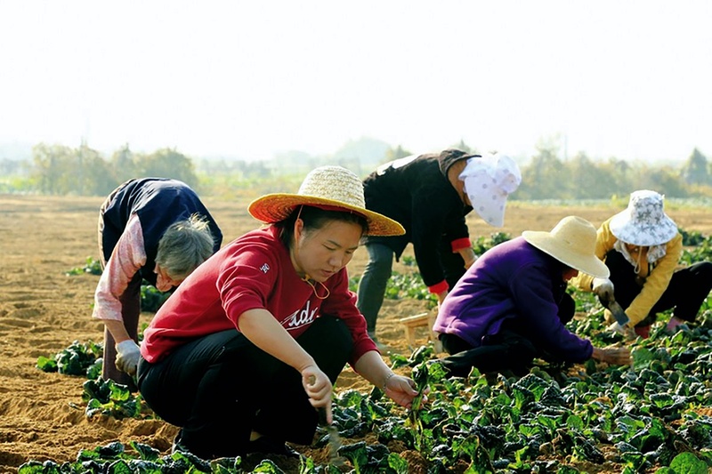 近日,随县安居镇陈家湾村组织村民在原产区抢季移栽优质泡泡青,确保明年春节前上市,实现蔬菜丰产、村民增收。(随州日报通讯员余红琼摄)