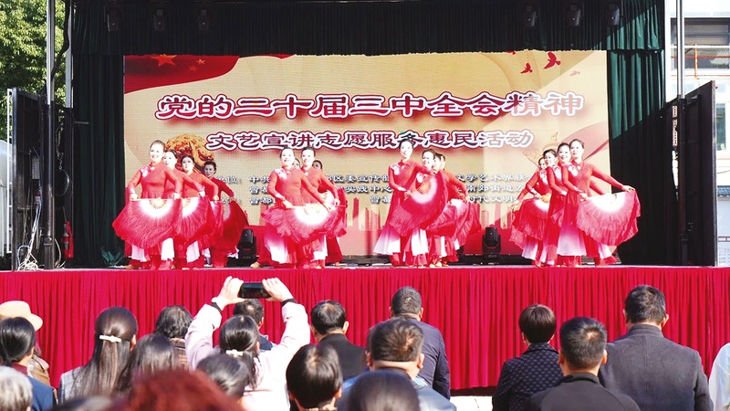 11月6日,曾都区党的二十届三中全会精神文艺宣讲志愿服务惠民活动在南郊街道柳树淌社区举行。(随州日报通讯员晓萱摄)