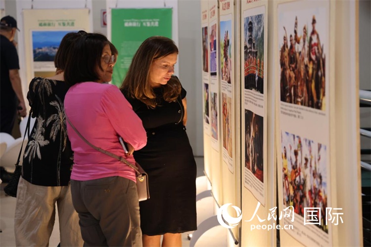 图为当地观众在图片展现场欣赏作品。人民网记者 张志文摄