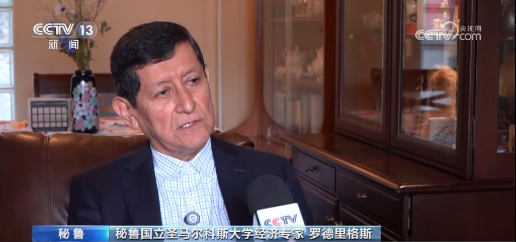 秘鲁国立圣马尔科斯大学经济专家罗德里格斯称:“中国对秘鲁的发展做出了很大的贡献。首先,中国从秘鲁这里购买产品;其次,中国向秘鲁提供了很多产品,有价格实惠的手机、汽车,提高了许多人的生活水平。”