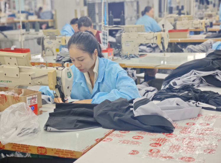 压胶过程既考验工人的眼力和技术,也需要工人的耐心与细心。记者在现场看到,工人们将面料平铺在压胶机的工作台上,紧盯着压胶的每一个细节,时而微调面料位置,时而检查胶条的粘合情况,确保每一道压胶都完美无瑕。这几年,利维高专注于技改升级,由“制造”向“智造”转变,先后购买100多台模板机、压胶机、补压机等设备,以“更新”促“焕新”。同时,积极破解招工难题,与园林、张金、龙湾等地5家企业签订合作协议,实行抱团发展、互惠共赢。百花齐放春满园。紧跟利维高步伐,奥瑟夫、东颢、比帆等有着加工户外服装20多年经验的企业接连落户。如今,潜江已聚集100多家户外服装企业,年产高端户外服装500万件以上,正朝着建设全国优质户外服装供应链基地疾步前行。