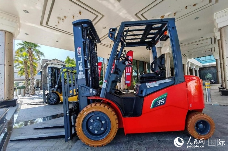 | 活动现场展示的合力新能源叉车。人民网记者 管克江摄 |