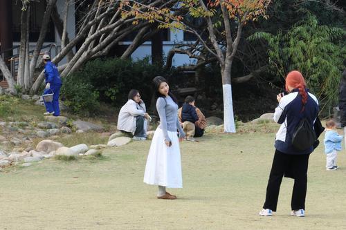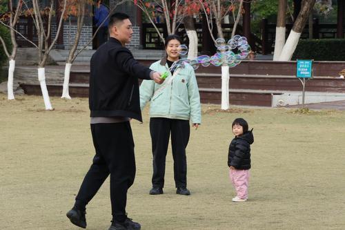 经历一段时间低温后,我市气温开始逐渐回暖,市民纷纷走出家门享受难得的冬日暖阳。昨日最高气温达到17℃,不少市民来到龙泉公园拍照、散步,尽情感受和煦的阳光。(记者胡圣宇 摄)