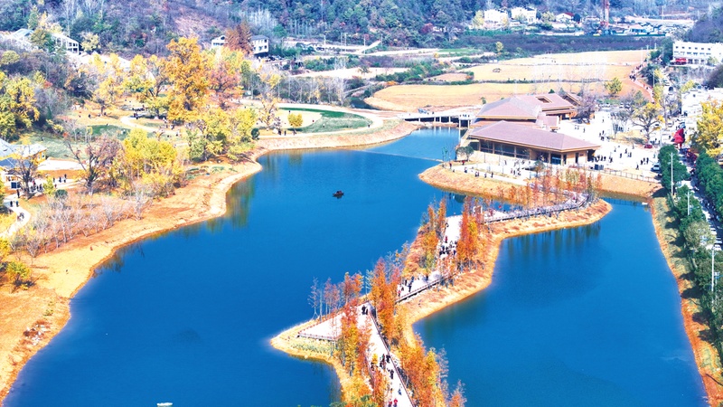 连日来,改造后的银杏谷景区吸引了众多游客前往赏玩打卡。(随州日报通讯员王劲萱摄)