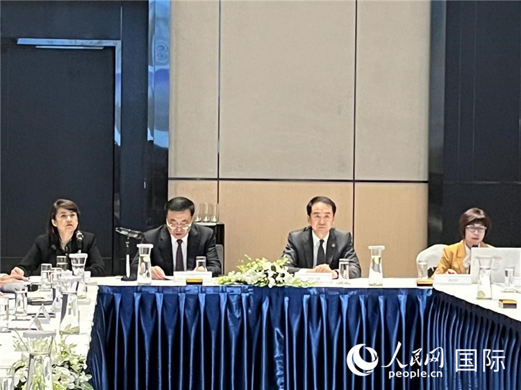 中国驻越南大使何炜(右二)和新疆维吾尔自治区党委副书记、乌鲁木齐市委书记张柱(左二)出席活动并致辞。人民网记者 杨晔摄
