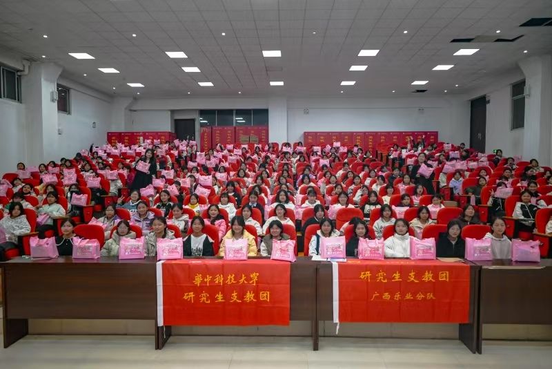 11月24至25日,华中科技大学研究生支教团乐业分队利用两个晚上的时间,相继为广西壮族自治区百色市乐业县同乐镇初级中学三个年级600多名女生“补”上一堂特殊的课。