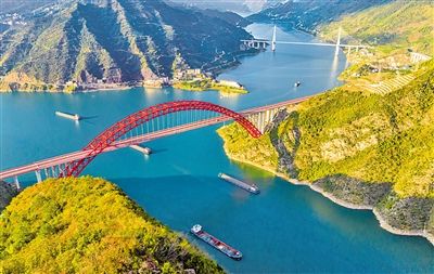 初冬时节,长江三峡西陵峡两岸色彩斑斓,好似一幅美丽画卷。 图为船舶行驶在长江三峡西陵峡湖北省宜昌市秭归县水域(无人机照片)。新华社发(郑家裕 摄)