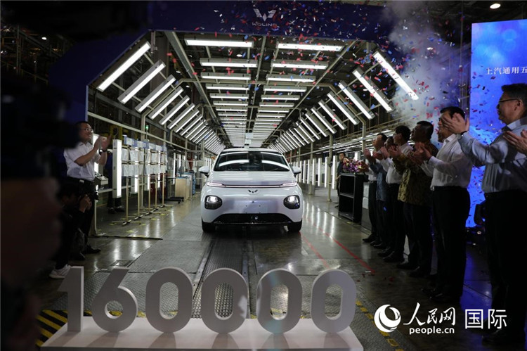 11月27日,上汽通用五菱印尼公司第16万辆整车暨“云朵”(电动汽车)出口车成功下线。人民网记者 曹师韵摄