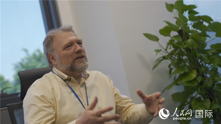 在康宁显示科技(重庆)有限公司,轲宝华接受记者采访。人民网记者 苏缨翔摄