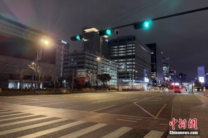 当地时间12月3日晚间,韩国总统尹锡悦发布紧急戒严令。图为当晚首尔世宗大路情况。中新社记者 刘旭 摄