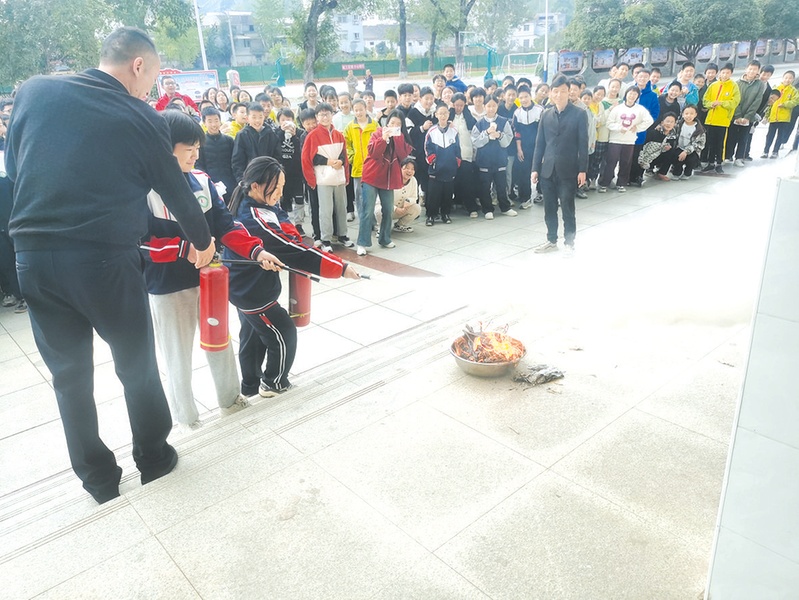 近日,曾都区洛阳镇中心学校举行了消防安全演练活动,提高学生的安全防范意识,增强自我保护能力,助力优化营商环境。(随州日报通讯员 赵正勇摄)