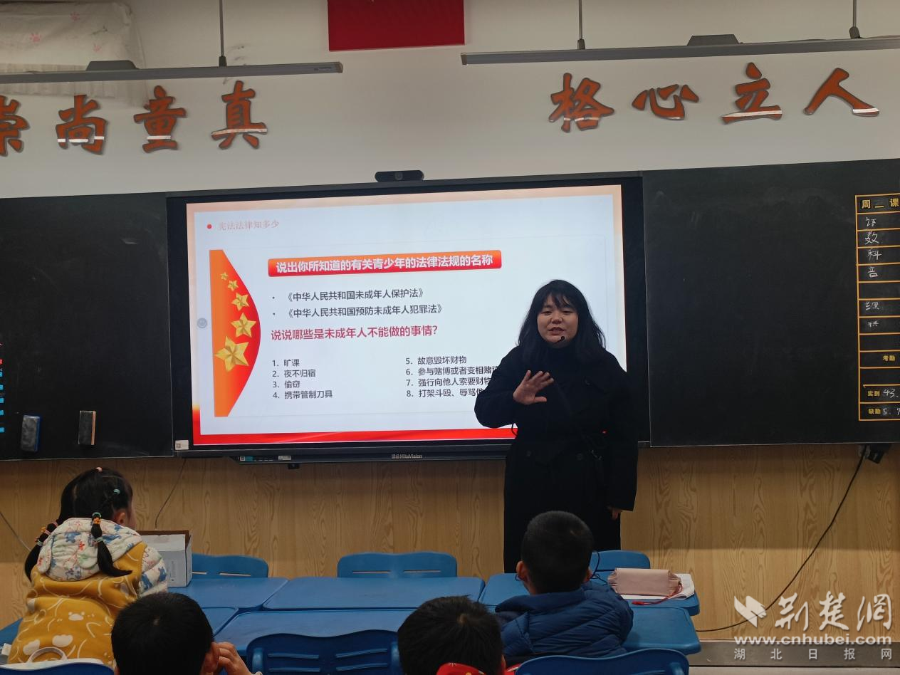 荆楚网(湖北日报网)讯(通讯员 彭俏)2024年12月4日在第十一个国家宪法日来临之际,一场旨在弘扬宪法精神、增强学生法治观念的主题宣传活动在武汉小学一(2)班开展。