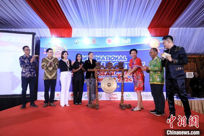 12月5日,2024“东盟-中国人文交流年”国际漫画大赛颁奖典礼在雅加达举行。图为嘉宾鸣锣启动。中新社记者 李志全 摄
