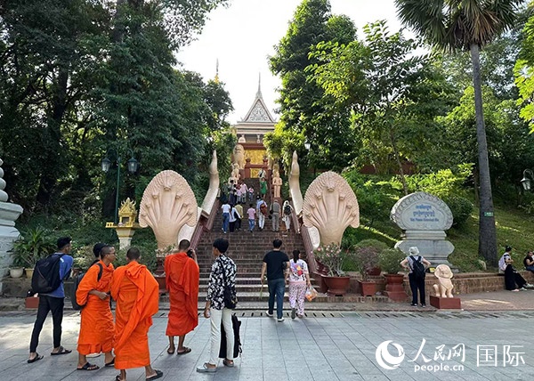 游客在金边塔山寺游玩。人民网记者 简承渊摄