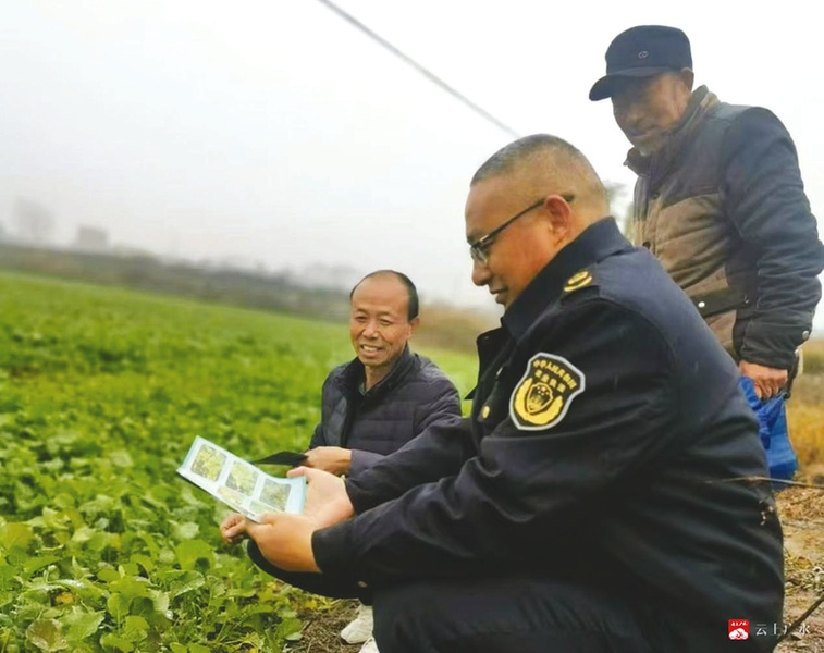 近日,广水市农业农村局工作人员深入田间地头发放宣传手册,向群众宣传信用知识,引导群众关注自己的信用状况,增强信用意识,进一步提升信用体系建设工作质效。(随州日报通讯员李茵、李秋月摄)