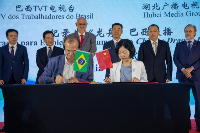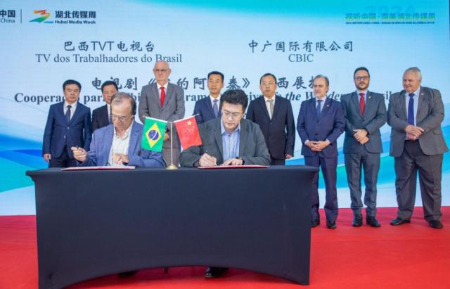 开幕式上,湖北广播电视台、中广国际有限公司分别与巴西TVT电视台签署合作协议,共同开启中国视听节目巴西展播活动。2025年年初,葡语译配版纪录片《龙舟》、电视剧《我的阿勒泰》将相继在巴西TVT电视台黄金时段播出。