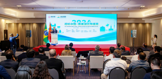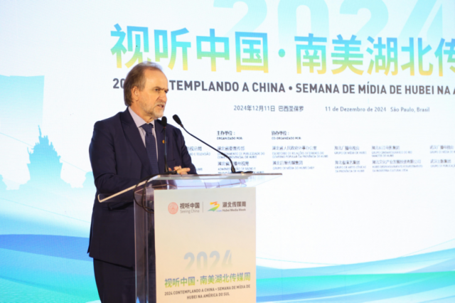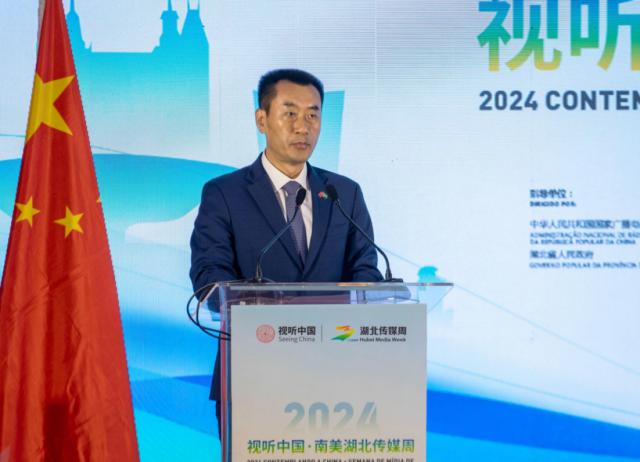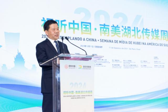 当地时间12月11日下午,由国家广播电视总局和湖北省政府指导,湖北省委宣传部、湖北省广播电视局联合主办的2024视听中国·南美湖北传媒周开幕式在巴西圣保罗举行。