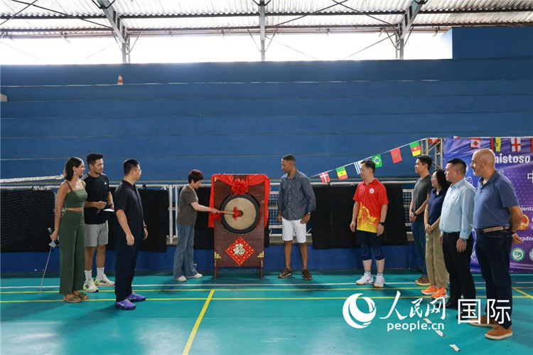 中国驻里约热内卢总领事田敏敲锣宣布比赛开始。人民网记者 陈海琪摄