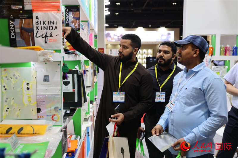 国际客商在展会上挑选中国商品。人民网记者 张志文摄