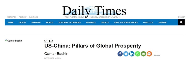 国际在线专稿:2024年12月13日,中美两国政府代表在北京换文签署议定书,将《中美科技合作协定》延期5年。这一“要合作不要对抗”的举措符合两国人民利益,也顺应国际社会期待。巴基斯坦《每日时报》网站16日刊发题为《中美:全球繁荣的支柱》的评论文章,文章作者、巴基斯坦前总统新闻秘书卡马尔·巴希尔认为,中美合作势不可挡,不仅将推动两国的科技进步和经济社会发展,更有利于促进双方应对全球共同挑战,增进世界人民福祉。